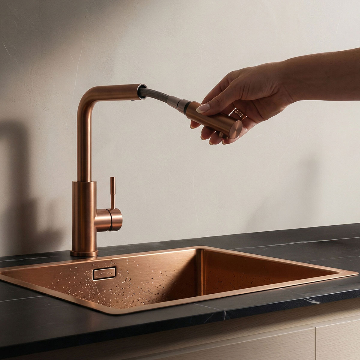 Werfen wir einen Blick auf die Trends bei Küchenarmaturen. Wenn es ein Element gibt, das in diesem Jahr wirklich den Übergang vom „funktionalen Objekt“ zum „Statement-Stück“ vollzieht, dann ist es die Küchenarmatur. Während in den letzten Jahren kühles Chrom und elegantes Schwarz dominierten, stehen 2026 Wärme, haptische Materialien und eine menschlichere Note im Vordergrund.