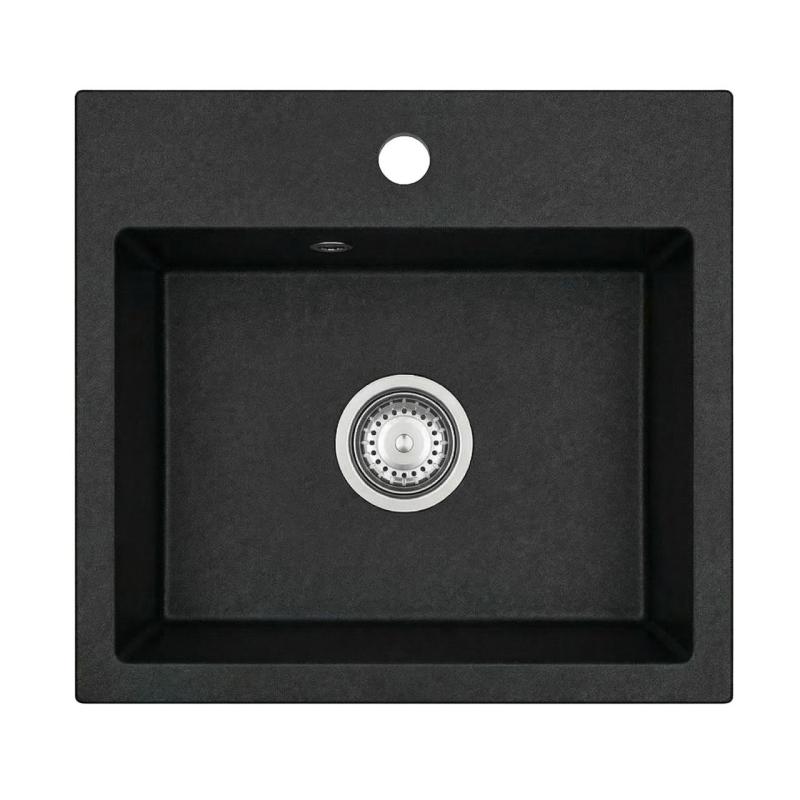 Graniteland Nera Granite Sink 45x42 cm Black Top Mount with Faucet Deck and Stainless Steel Plug 1208969985