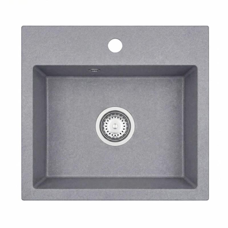 Graniteland Nera Granite Sink 45x42 cm Grey Top Mount with Tap Hole Bench and Stainless Steel Plug 1208971436