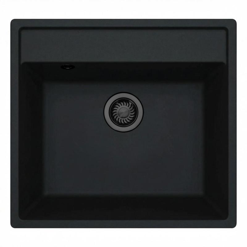 GraniteMy Bremen Granit Spüle 53x50 cm Schwarz - Aufbau, Unterbau und Flächenbündiger Einbau mit Armaturenlochbank und Gun Metal Stopfen 1208969971