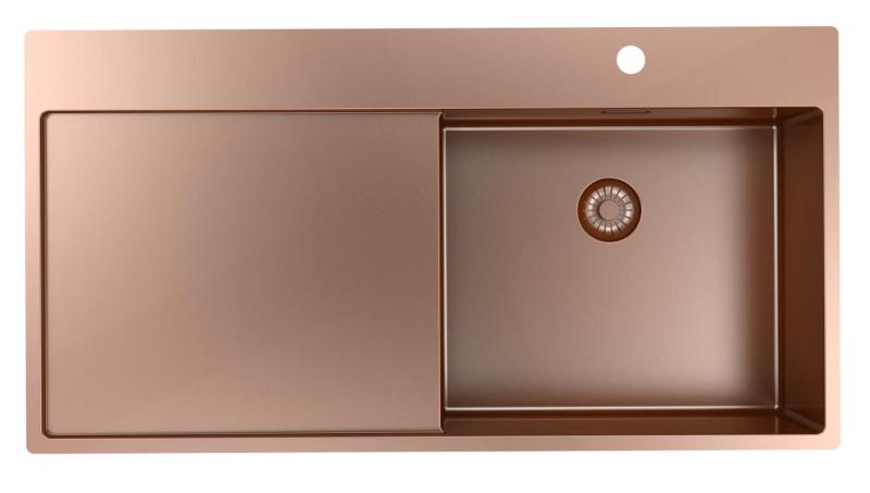 Pure.Sink Exclusivo Kupferne Spüle mit Abtropffläche 100 x 52 cm Wasserhahn rechts PEX47100RT-62