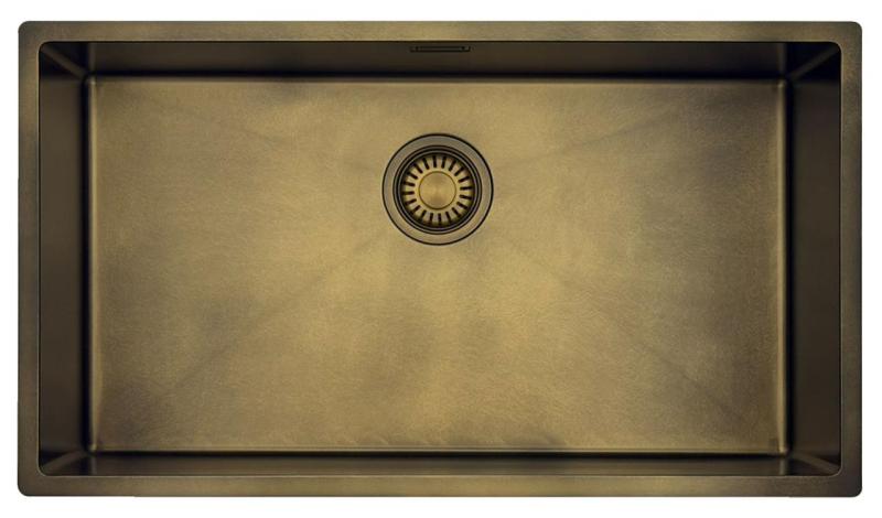 Pure.Sink Luxion Große PVD-Antik-Bronze-Spüle 74 x 40 cm Unterbau, flach eingebaut und aufgesetzt mit Bodenrost PLX7440-64