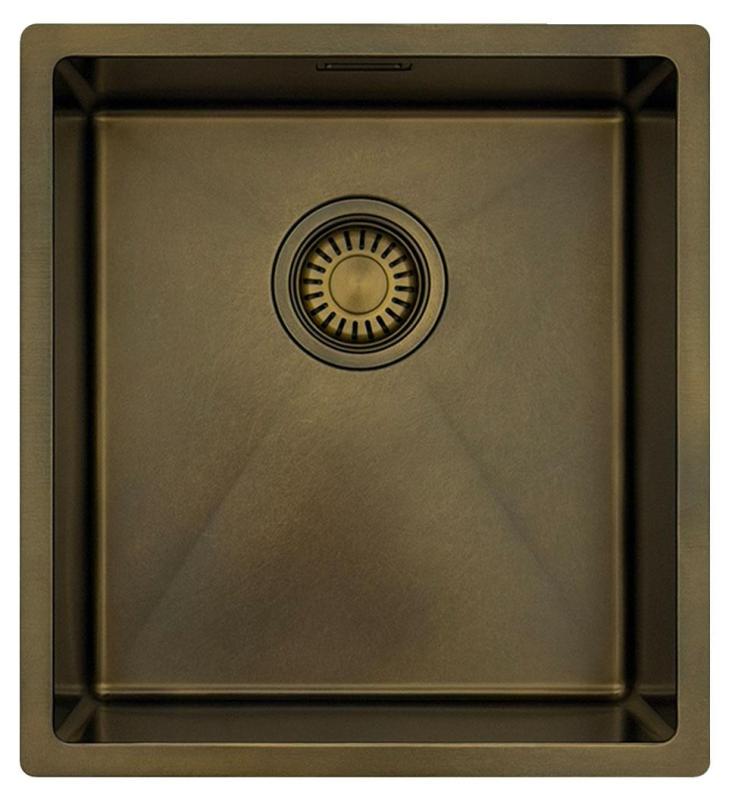 Pure.Sink Luxion PVD Antik Bronze Spülbecken 36x40 cm Unterbau, flach eingebaut und aufgesetzt mit Bodenrost PLX3640-64